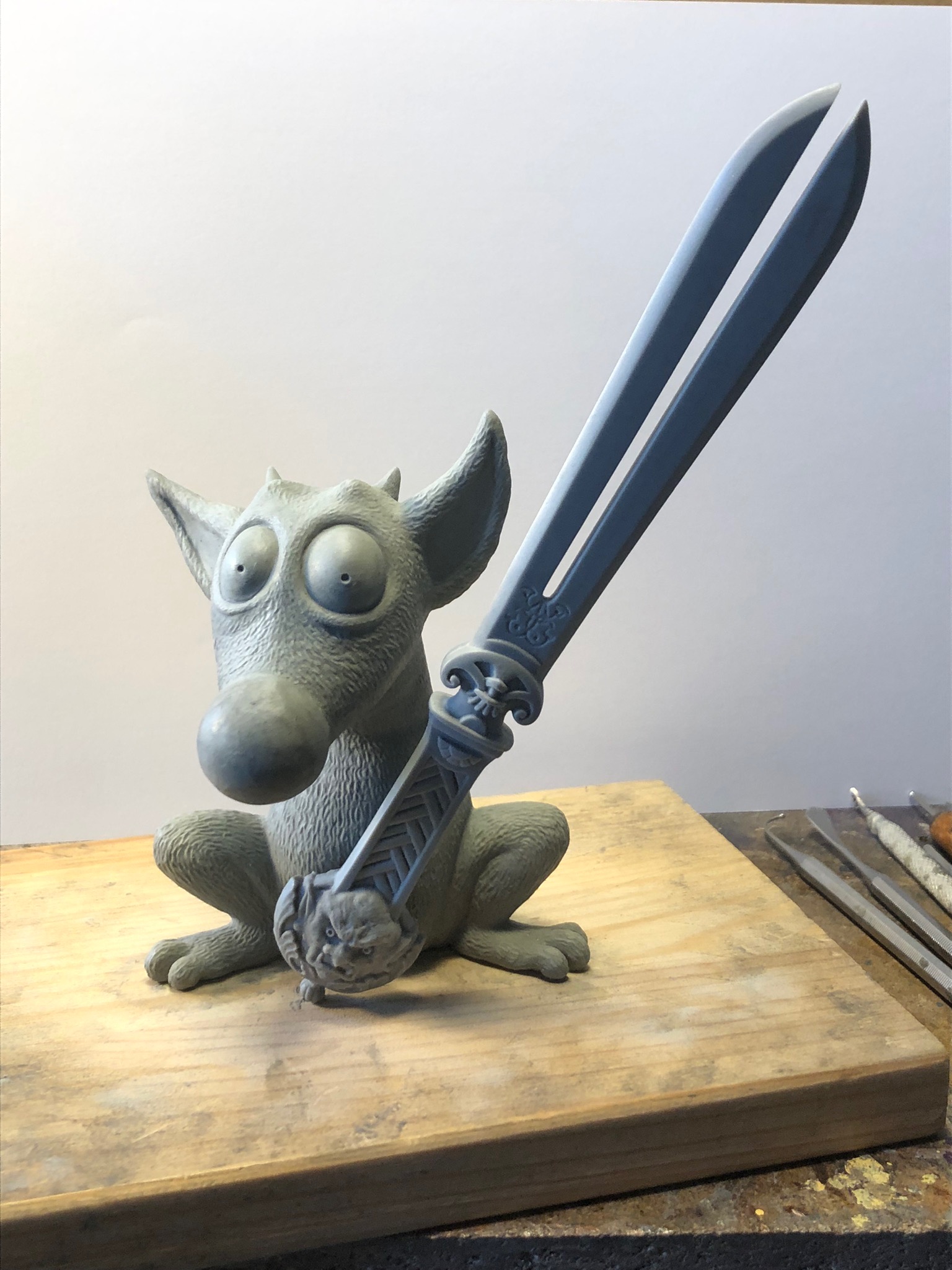 (Es war aber sowieso sinnvoll, damit zu starten, weil der kleine Wolpertinger das Schwert ja in den Pfoten haben würde. Von daher? …)