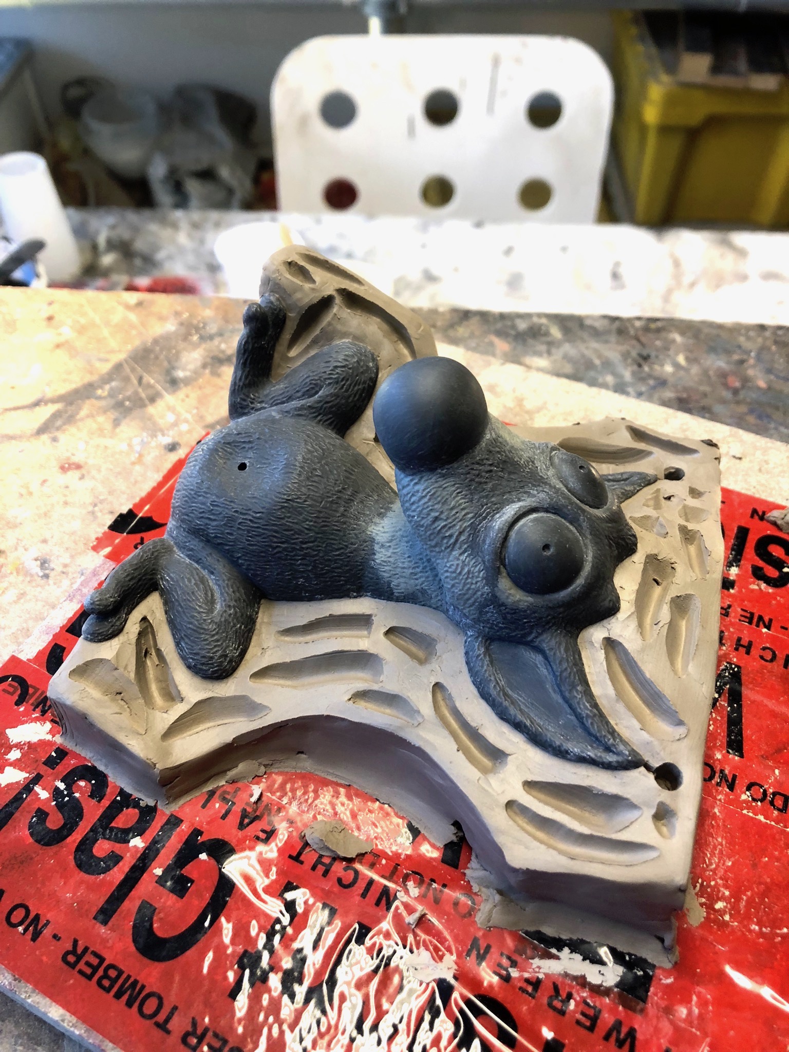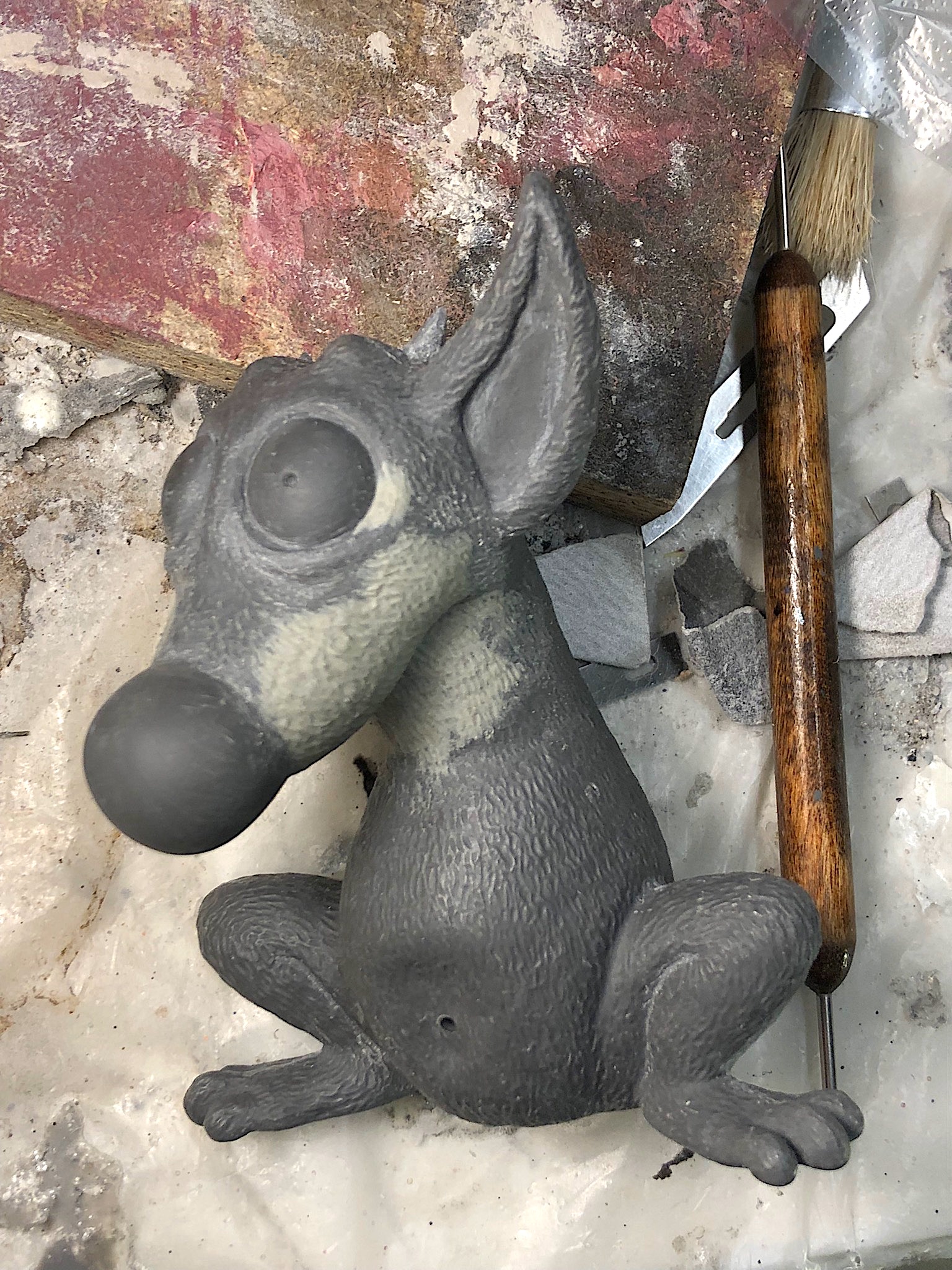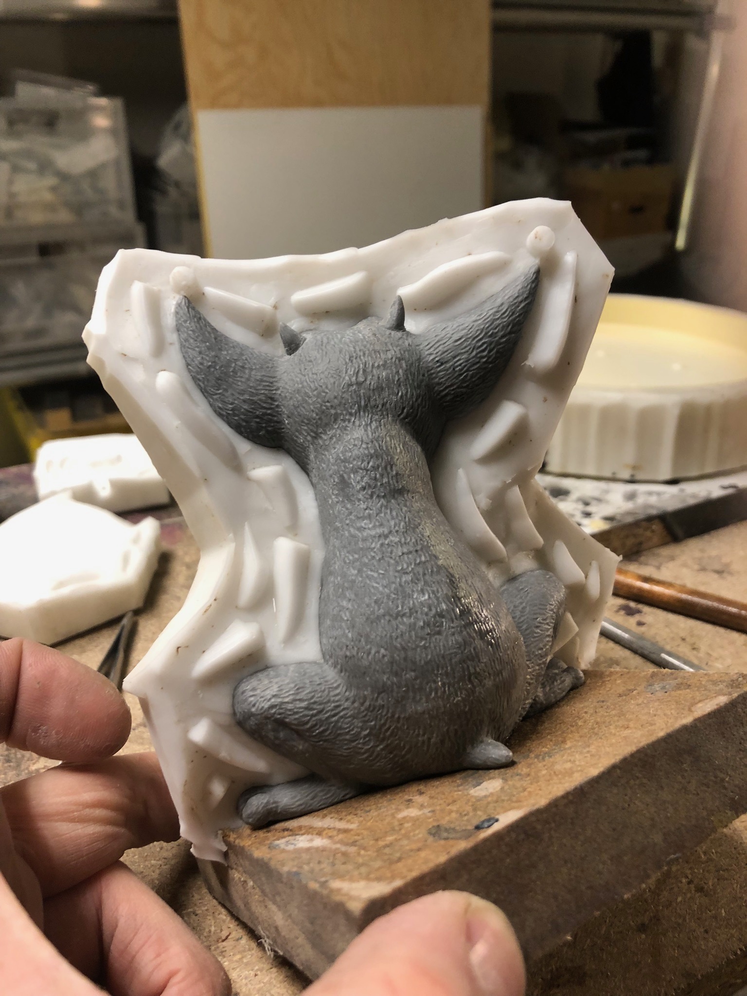 Ich habe wieder einiges vom Polyurethan-Guss weggefrässt und anders mit Plastilin hinzumodelliert, was man hier sehr gut sehen kann.