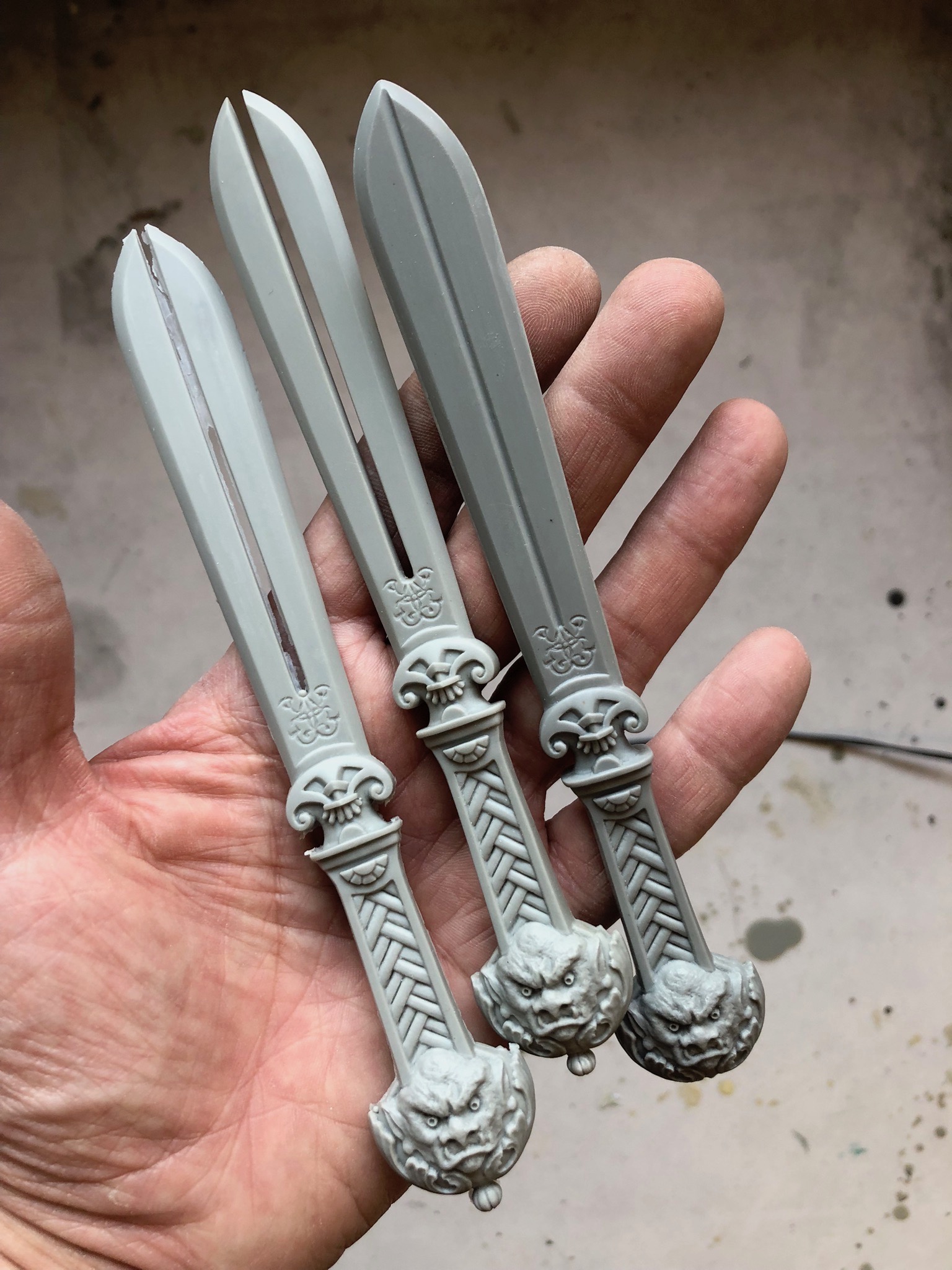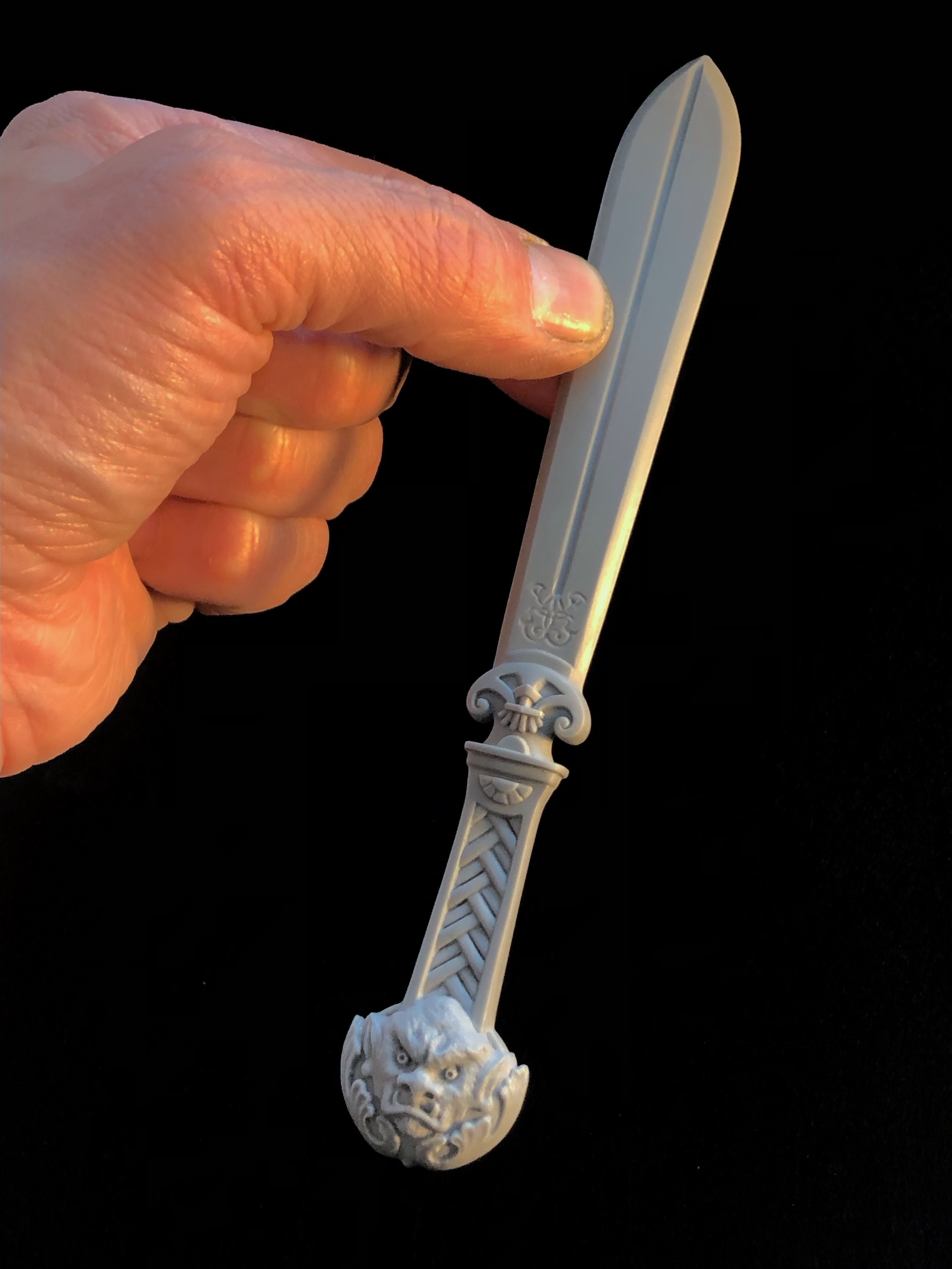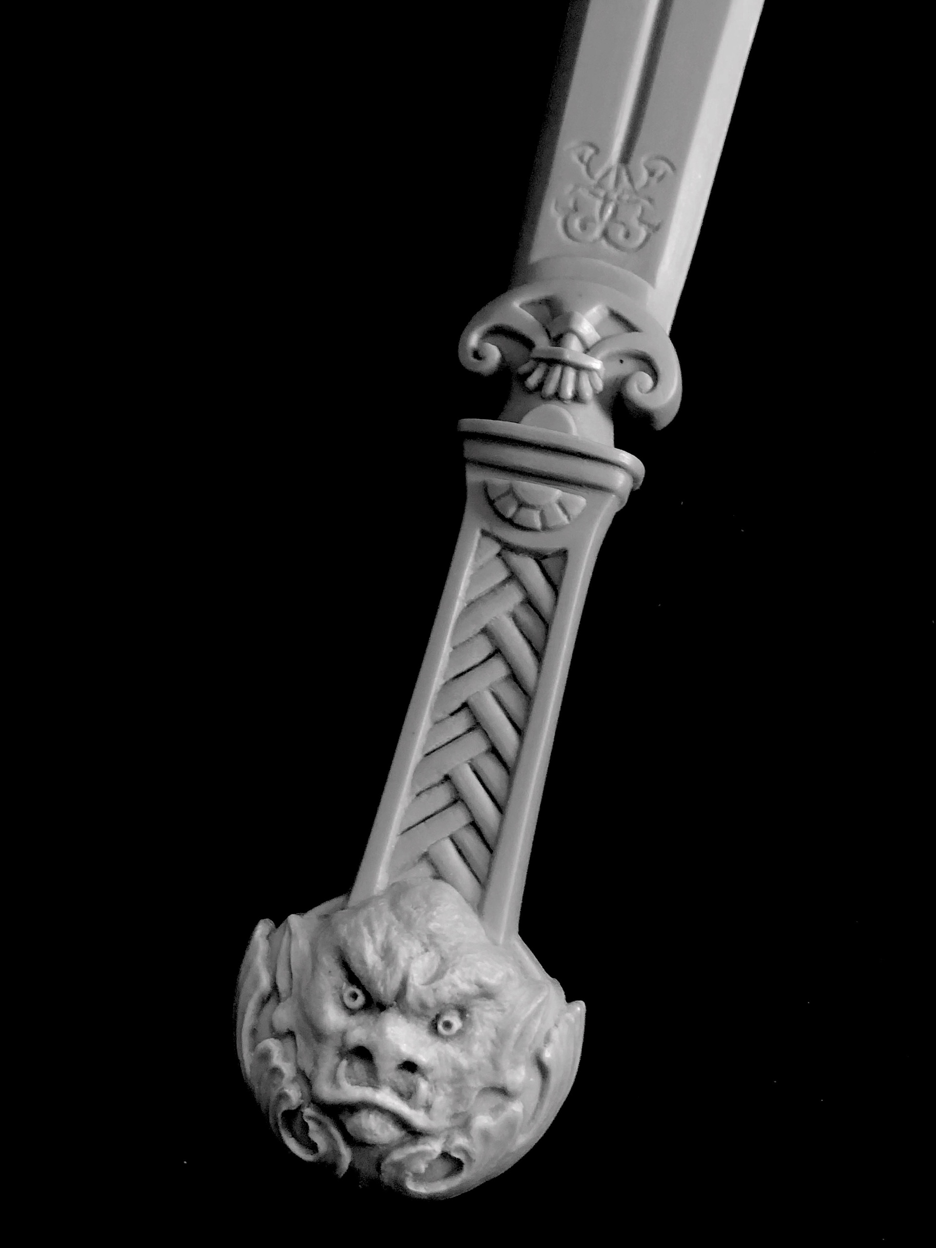 Das fast fertige zweischneidige Dämonenschwert LÖWENZAHN, in dem bekanntlich zwei Seelen wohnen: eine grobe und eine sanfte …